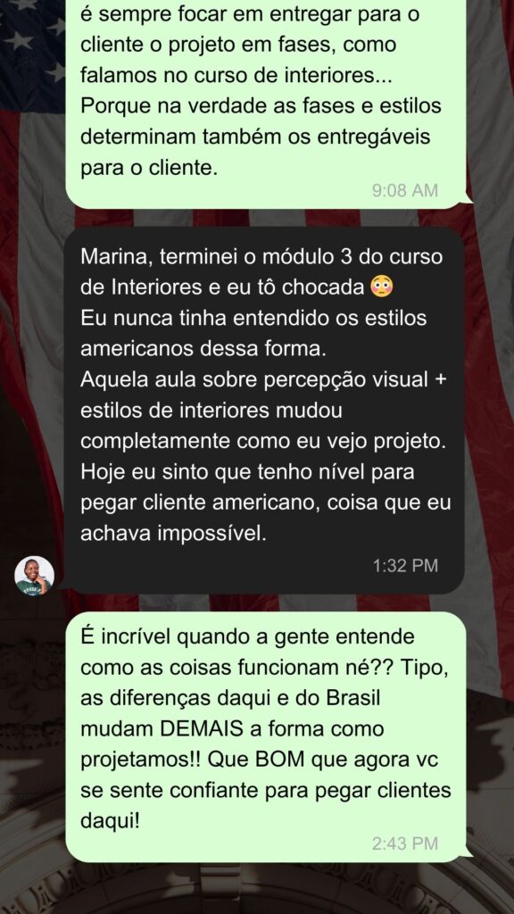 Eu trabalho com design de interiores no Brasil e sempre sonhei em atender clientes americanos, mas não tinha ideia de como o mercado funcionava.