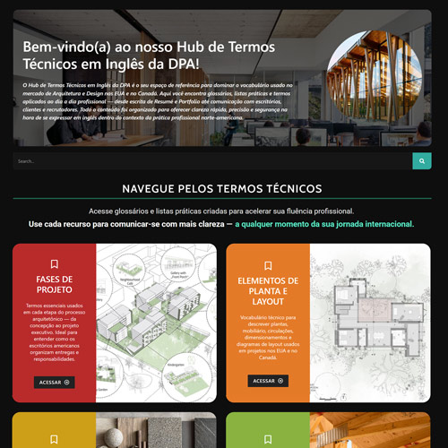 - Glossários exclusivos com os termos essenciais usados em escritórios de arquitetura e interiores nos EUA/CA — organizados em mais de 10 categorias práticas.