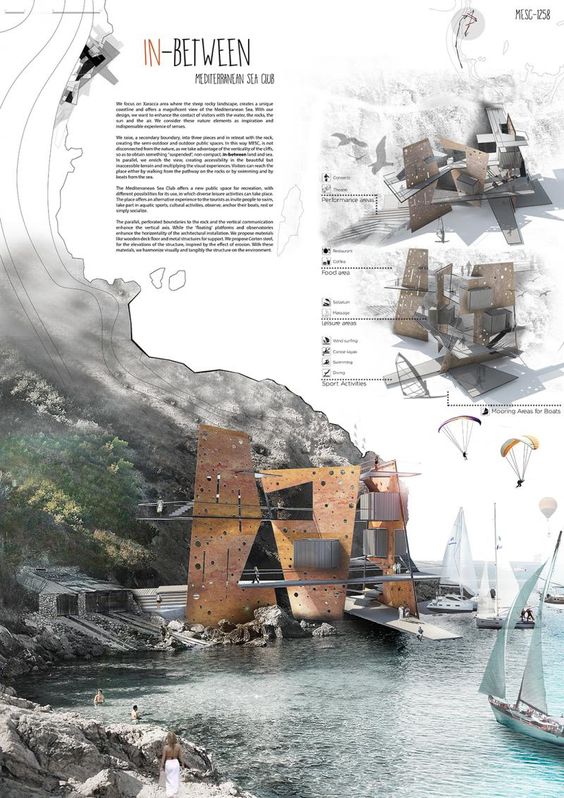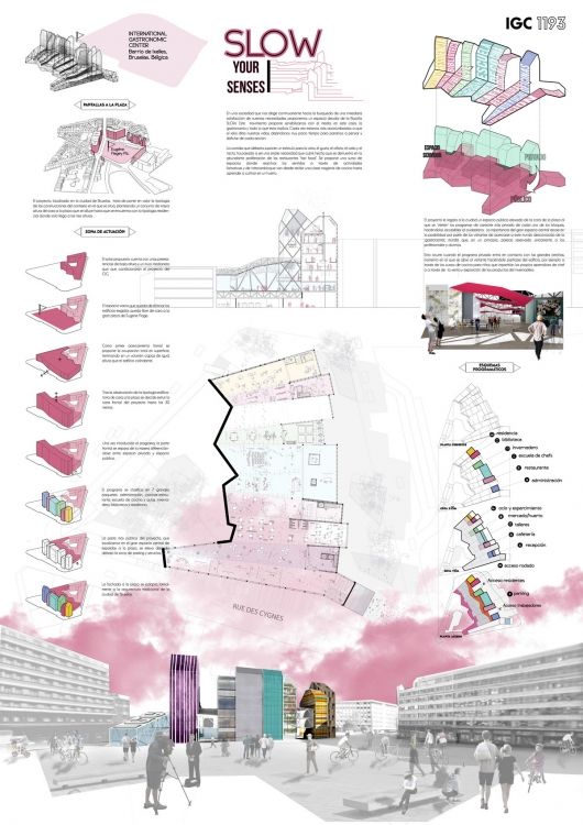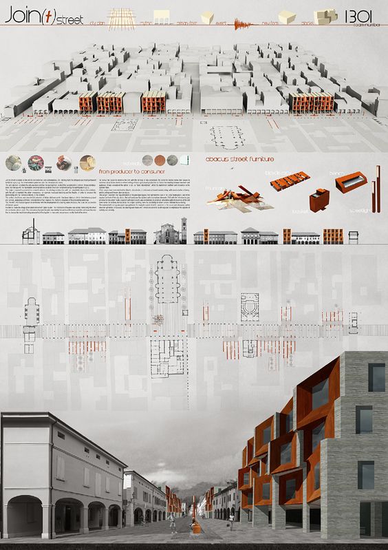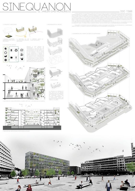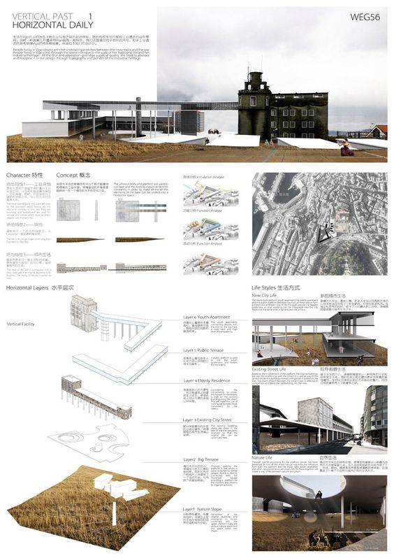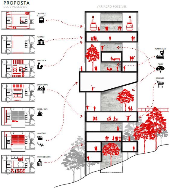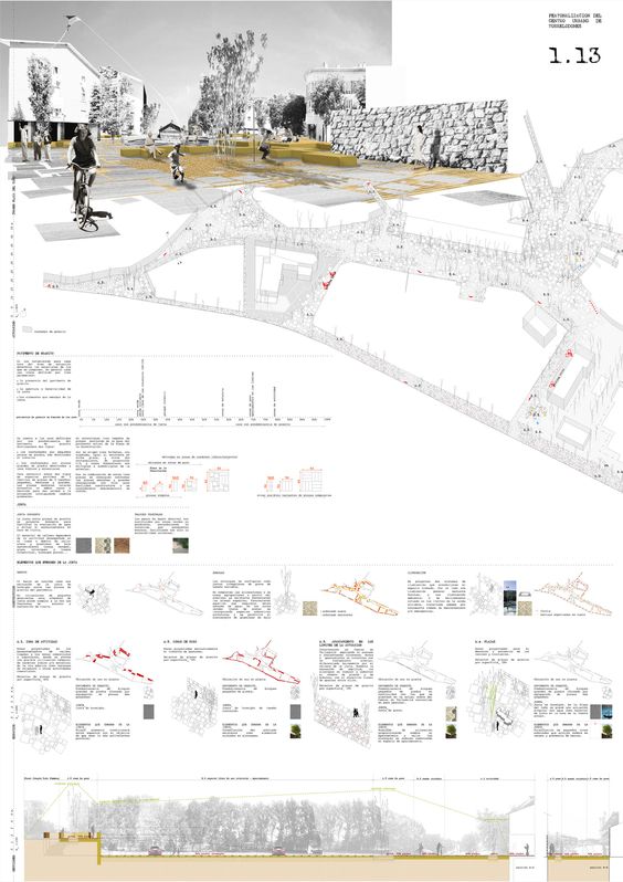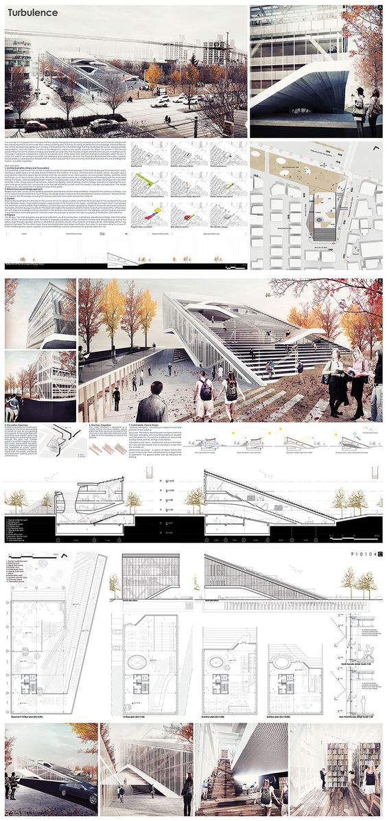 Olhem que interessante essas pranchas: todas possuem um elemento em destaque. Nos primeiros segundos o leitor já consegue ver qual o destaque do projeto devido à escala dele em relação aos outros elementos. A prancha à direita eu diagramei para um concurso que eu participei alguns anos atrás.
