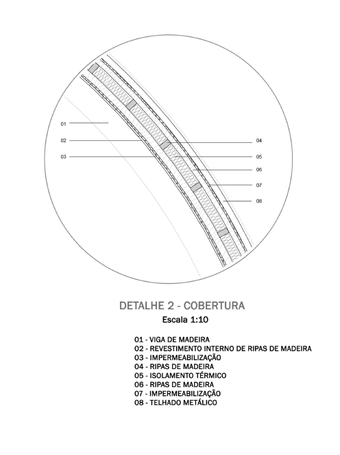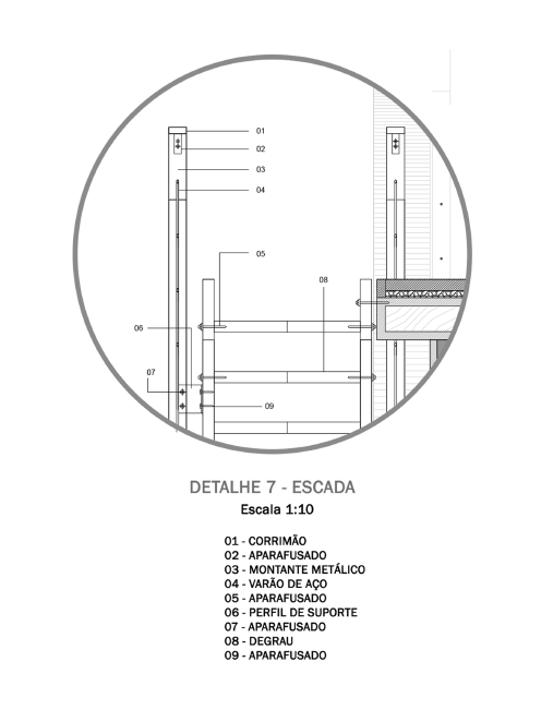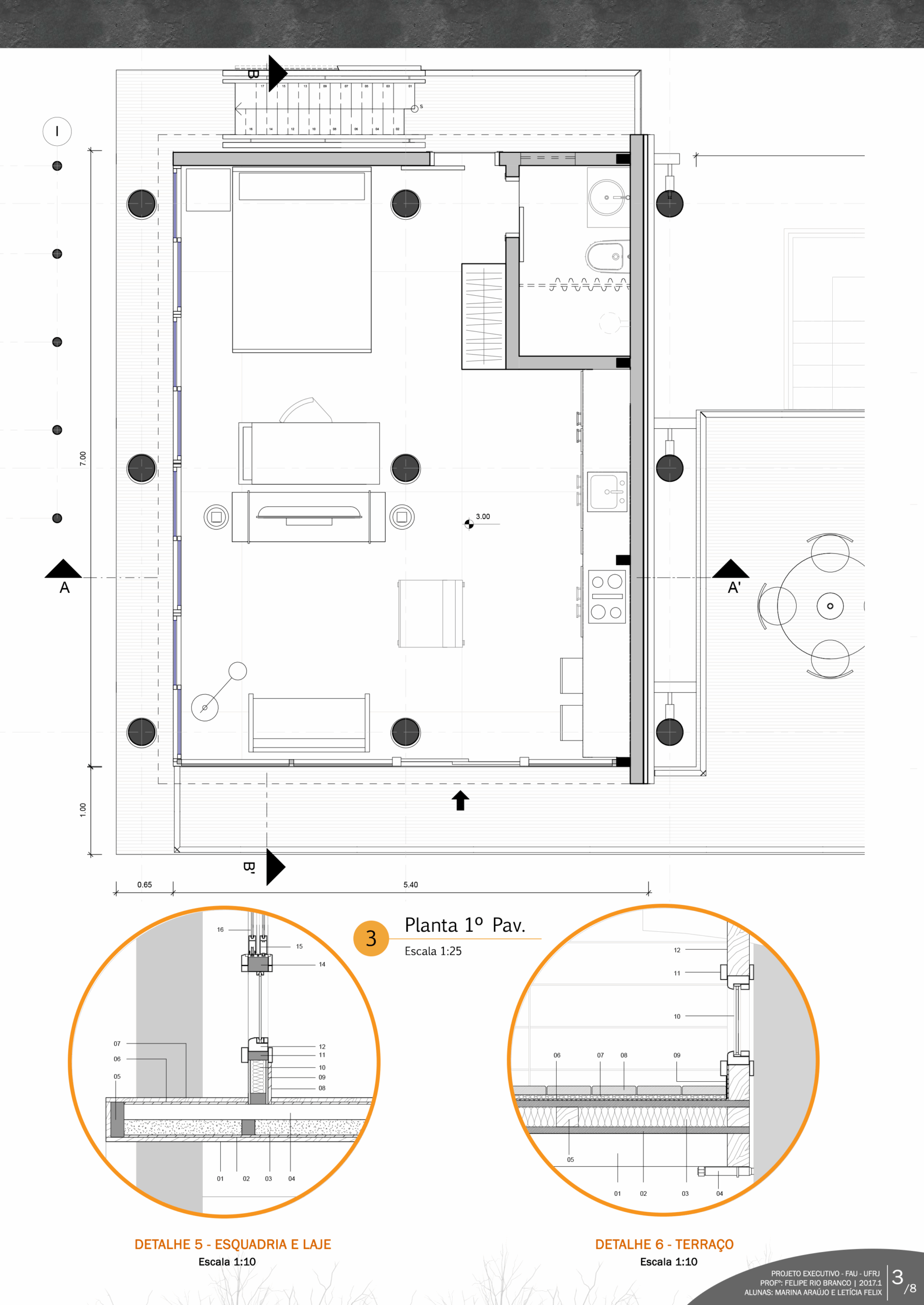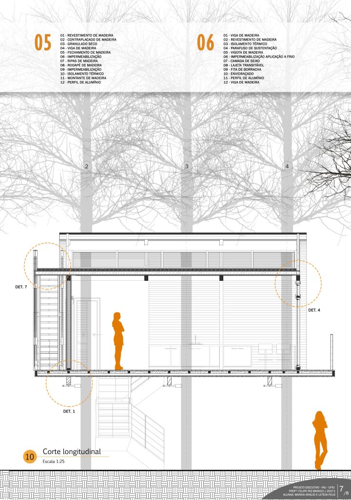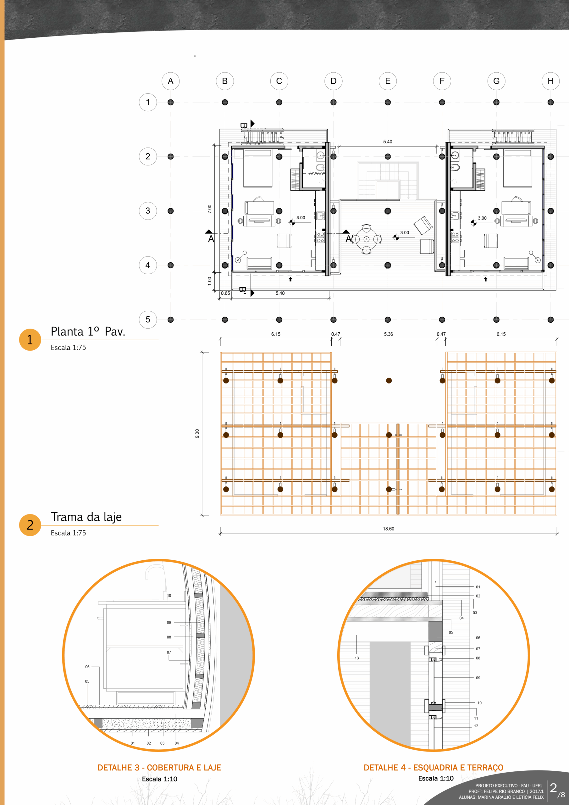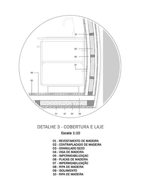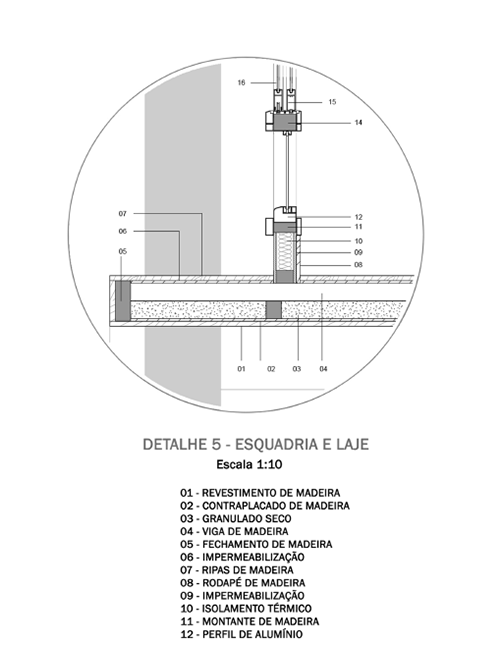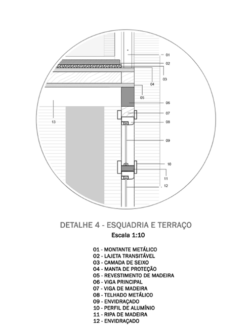 Por fim, foram detalhados os encontros da laje com a cobertura, da cobertura com o terraço, das esquadrias e da escada.
