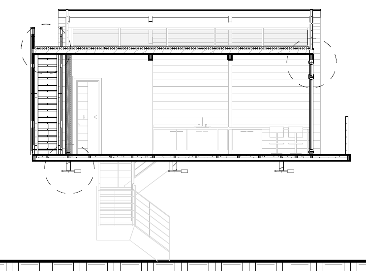 Na cobertura instala-se uma grande curva que quebra com a geometria retangular das paredes, fazendo com que esta se abra diretamente para a natureza. Aqui, cobertura e terraço se unem em um único sentido, dando abertura para a natureza ao redor da casa.